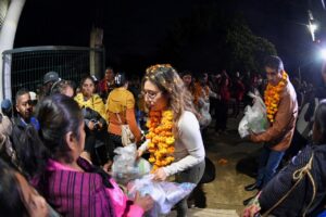 “Más que palabras nos damos a la acción, y hoy estamos aquí, en esta Sierra de Chincontepec, apoyándolos con despensas y manos de trabajo, refrendando nuestro compromiso y disposición, para que unidos, pongamos nuevamente de pie las comunidades afectadas”, señaló.