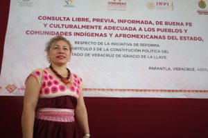 En Papantla, la secretaria de la Comisión de Asuntos Indígenas y de las Comunidades Afrodescendientes y representante del Distrito VI, diputada Miriam García Guzmán, encabezó el encuentro en el que se realizaron las etapas de acuerdos previos e informativa y reconoció el interés de la población y la labor de organismos como el Instituto Nacional de los Pueblos Indígenas (INPI) y la Comisión Estatal de los Derechos Humanos de Veracruz (CEDHV).
