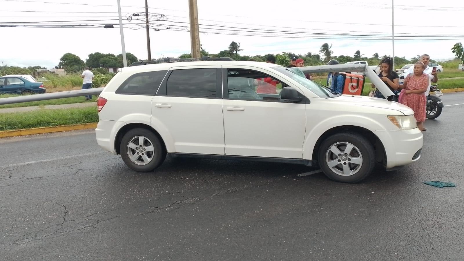 Brutal impacto: Camioneta termina atravesada por barandal metálico