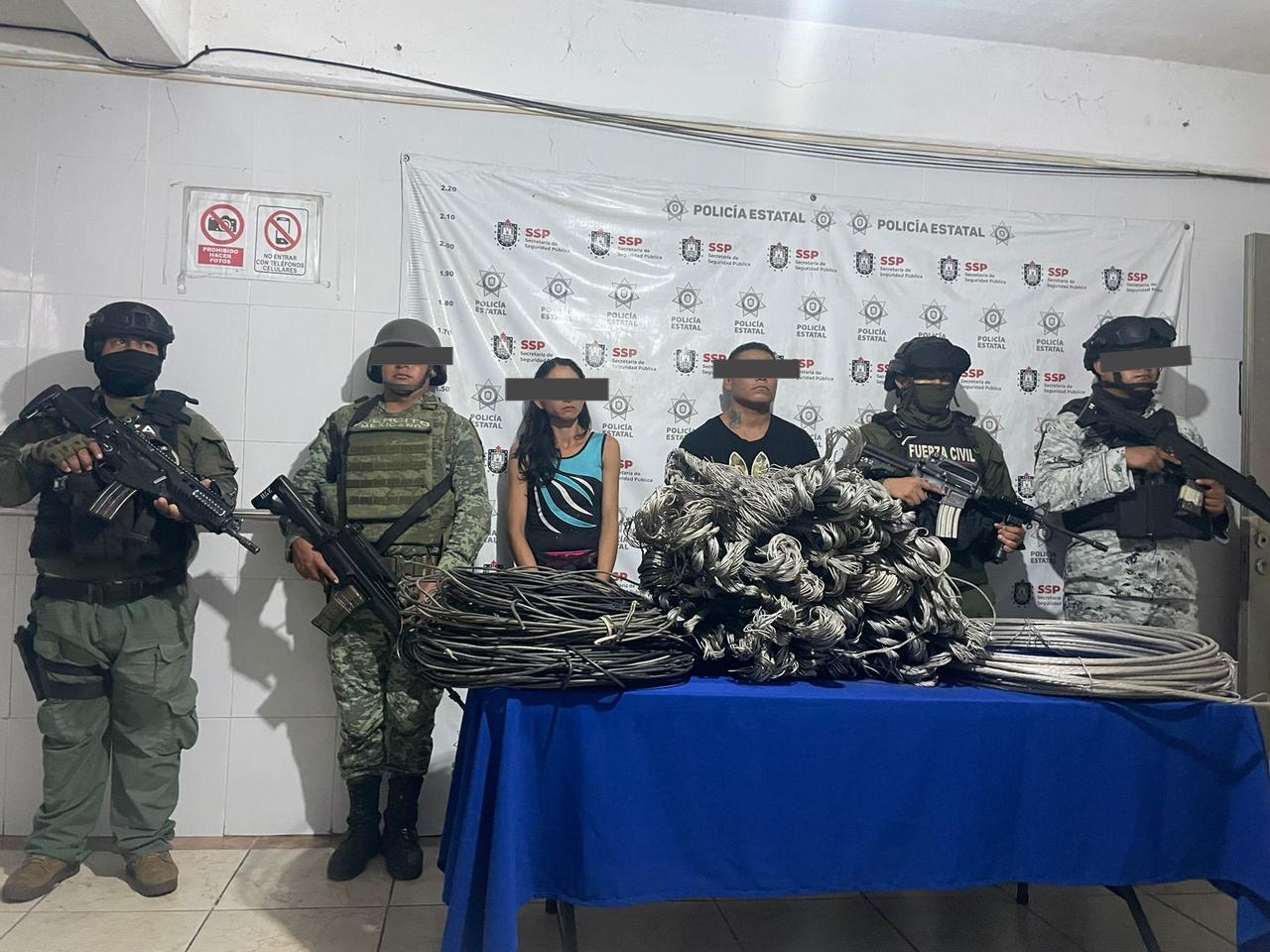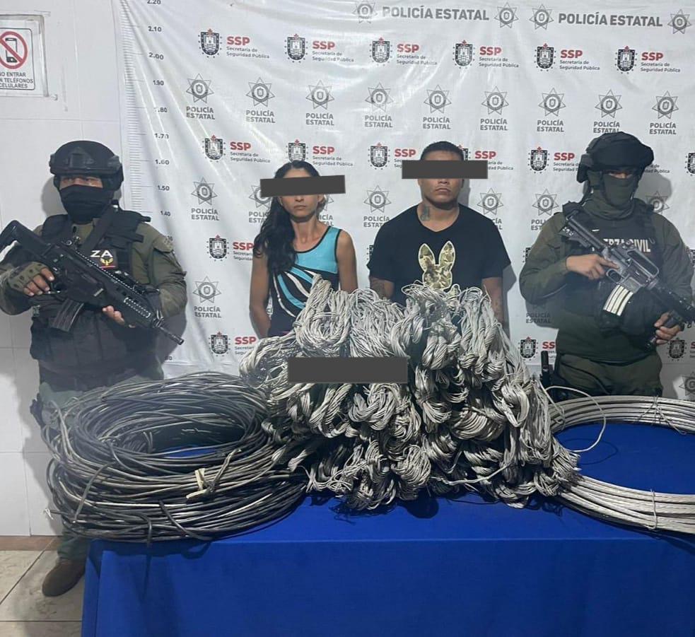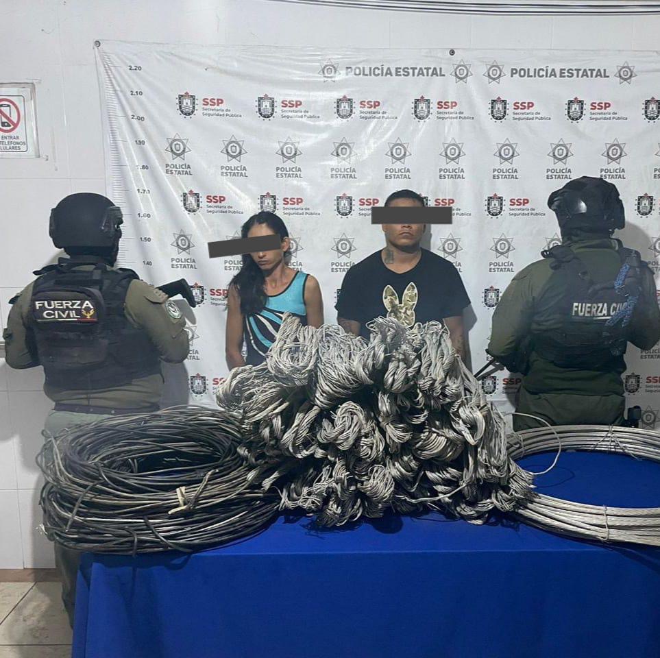 La madrugada de este viernes elementos de la Fuerza civil delegación Coatzacoalcos detuvieron en Villa Allende, a una pareja dedicada al robo de cables de energía eléctrica.