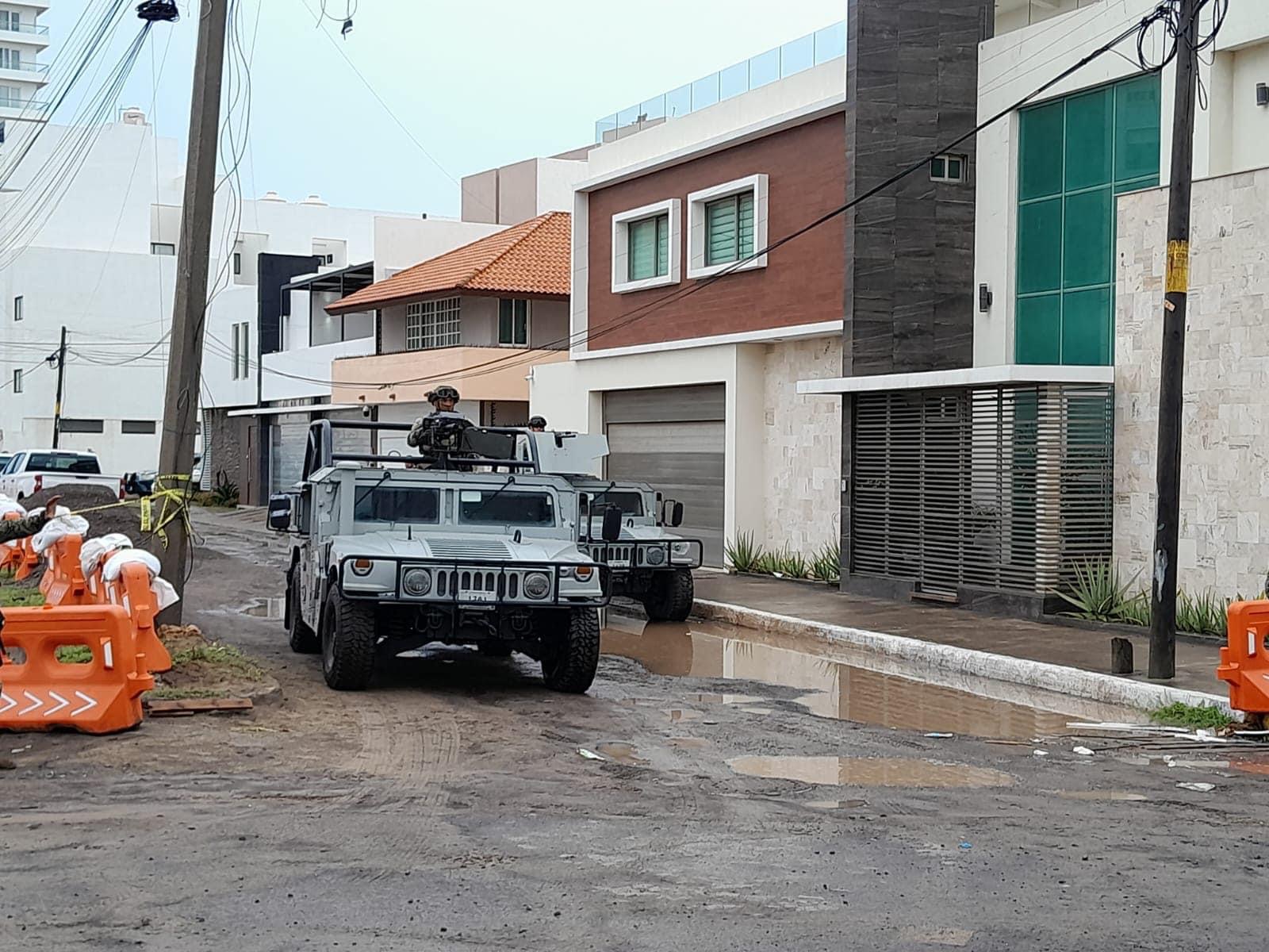 Elementos federales y estatales realizan un operativo en el fraccionamiento Costa de Oro de Boca del Río en donde se registra presencia de unidades blindadas entre ellas una tanqueta.