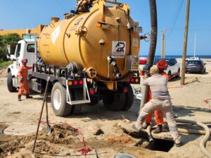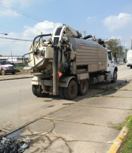 Mediante estos equipos especializados para la limpieza profunda de las tuberías, las acciones se han intensificado en sectores estratégicos como la avenida Juan Osorio y puntos aledaños, así como la avenida John Spark.