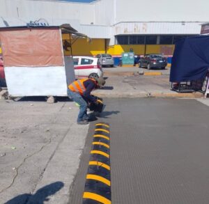 Posteriormente, una empresa externa comenzó con la colocación reductores de velocidad de goma en colores amarillo y negro, diseñados para ofrecer mayor seguridad vial sin afectar de manera excesiva a los automovilistas.