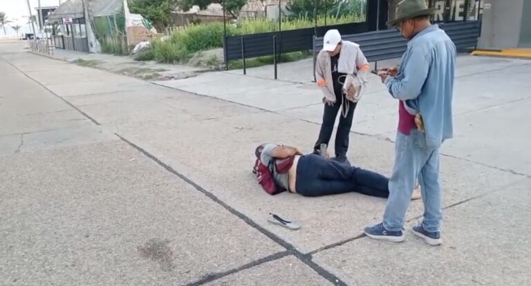Por varios minutos, el lesionado estuvo tendido sobre la vía pública, debido a que no hay ambulancias en Coatzacoalcos, lo que hizo tardada su atención.