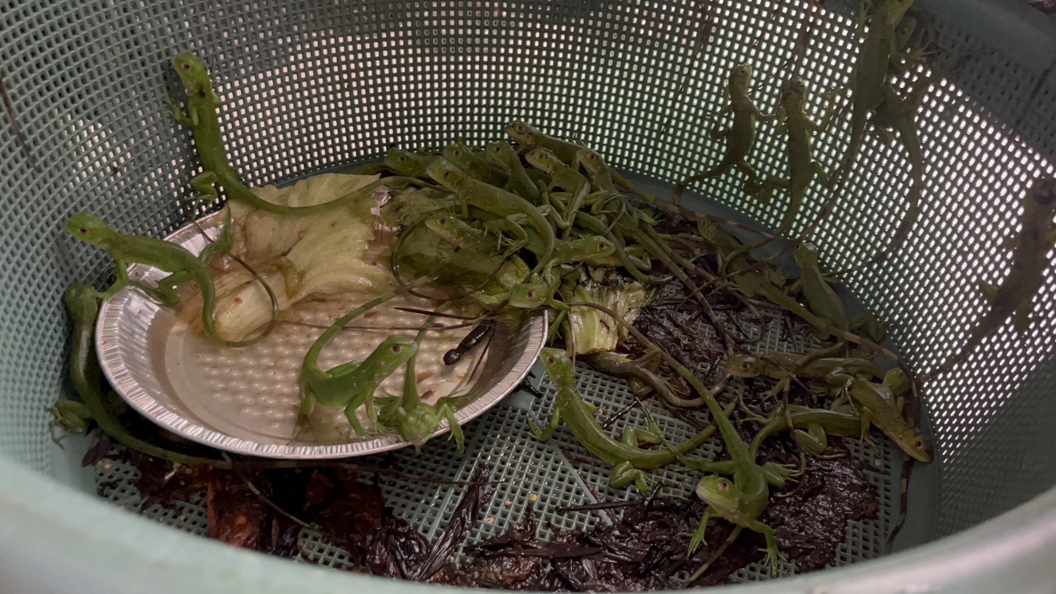 Luego de un mes bajo cuidado, más de 60 ejemplares de iguanas verdes eclosionaron exitosamente en las instalaciones de la asociación Guardianes de las Tortugas en Coatzacoalcos.