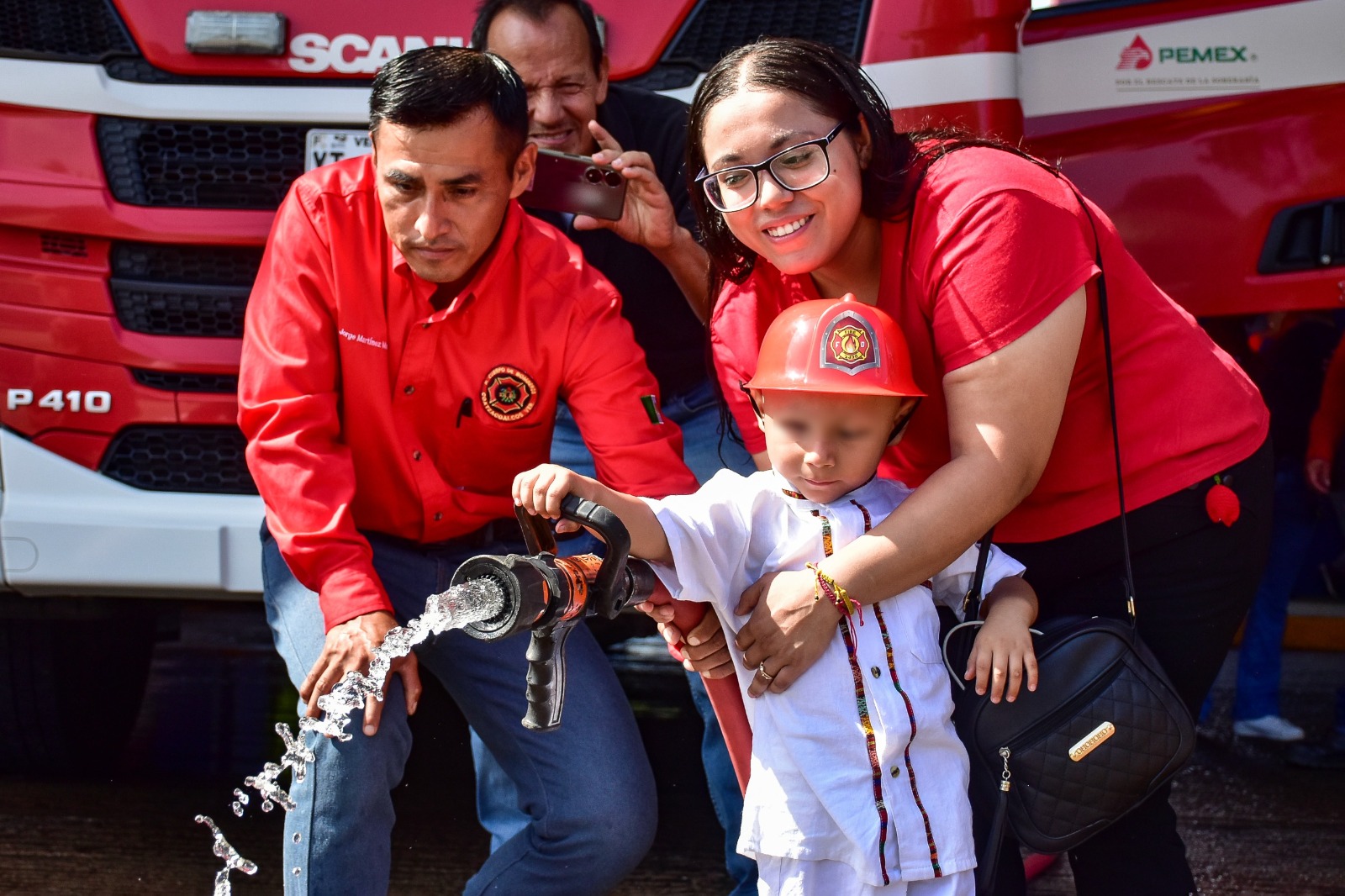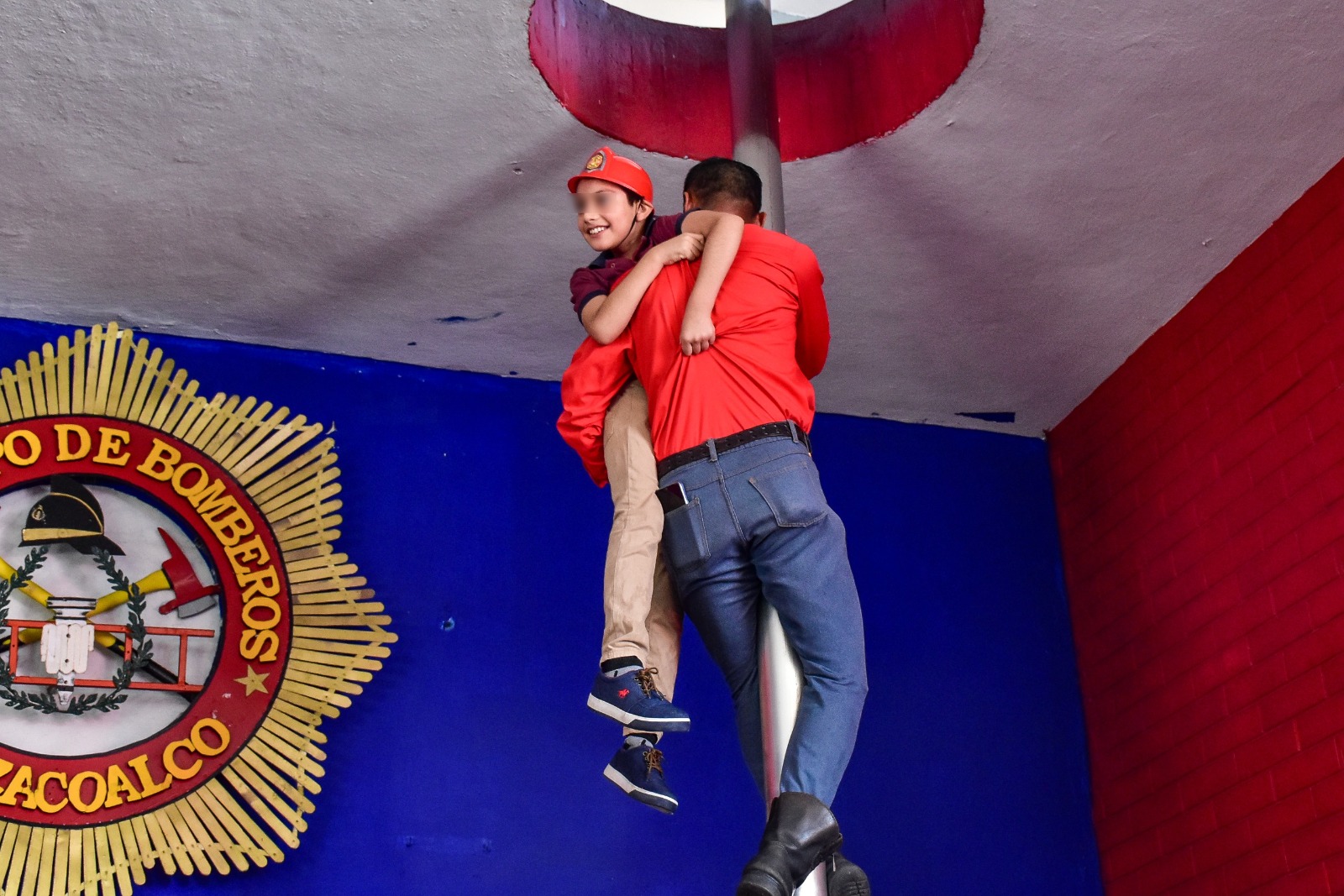 Haciel Aguilar Santos de 10 años y Zaid Elian de Jesús Ramírez de 2 años, se integraron al equipo del heroico cuerpo de bomberos, pudiéndose deslizar por el tubo de emergencias y manipular el equipo especializado en el combate al fuego.