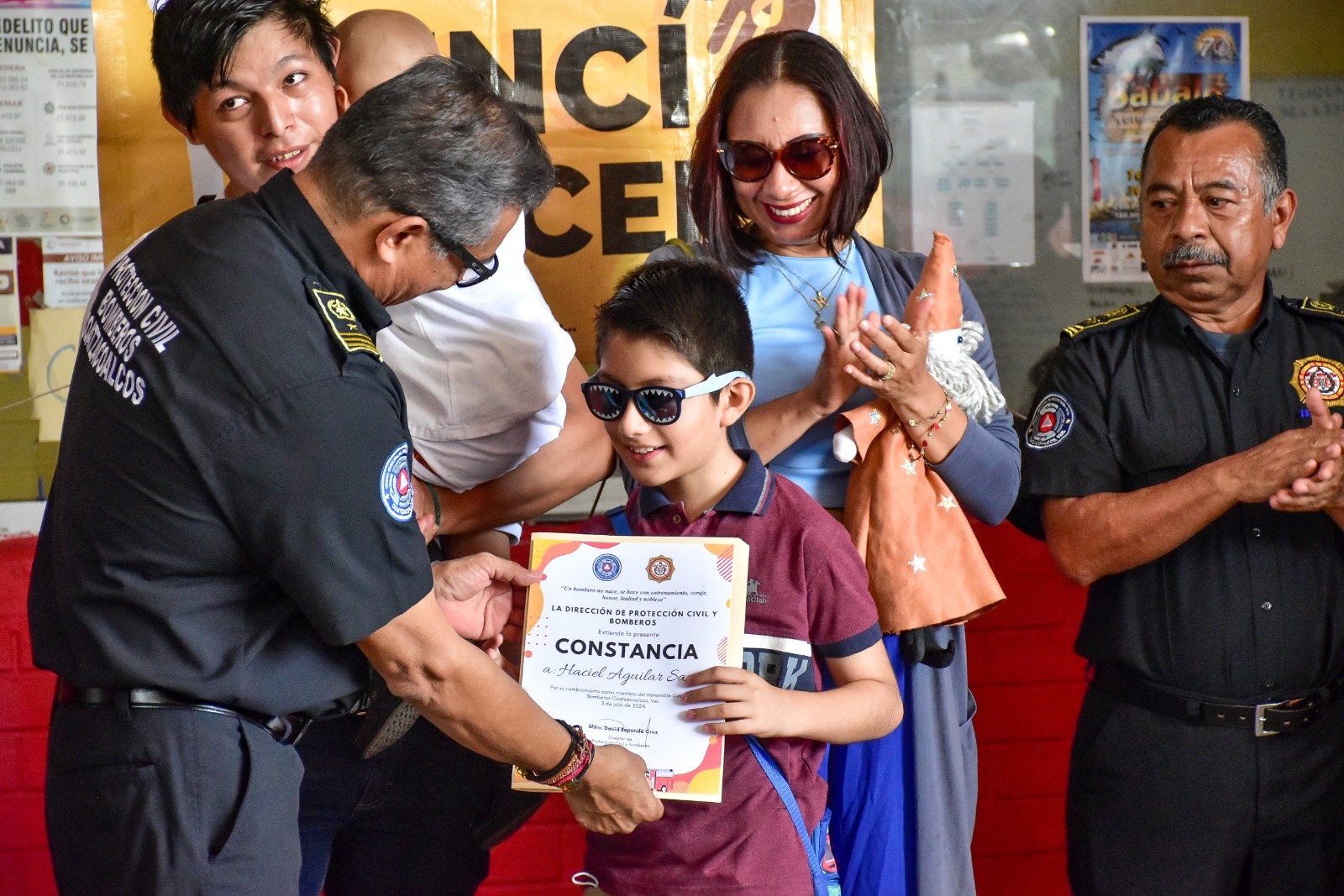 Los pequeños recibieron una constancia que los nombra miembros honorarios del Cuerpo de Bomberos, firmada por el director de la dependencia, David Esponda Cruz.