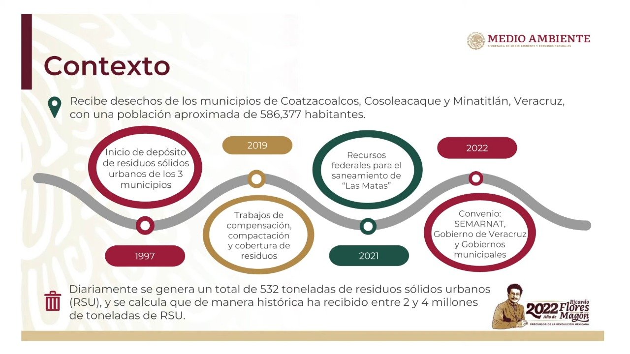 En la presentación de las diapositivas, López Obrador mencionó que se tienen avances en los estudios técnicos y acciones mitigadoras en el actual basurero pero aún falta la parte más compleja que es identificar y adquirir el terreno para su reubicación.