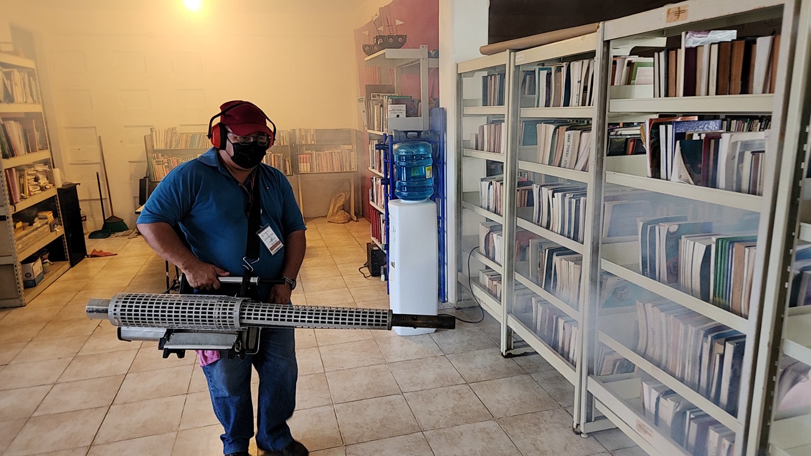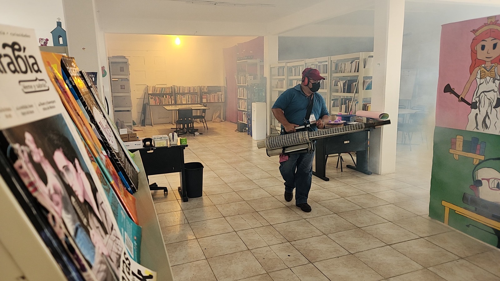 Como parte de la preparación del programa “Mis Vacaciones en la Biblioteca” se desinfectaron un total de 7 centros de lectura para lograr entornos saludables para los usuarios y más de 70 trabajadores que participarán en estas actividades educativas y recreativas.