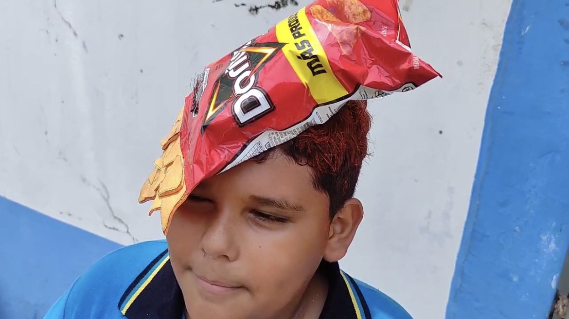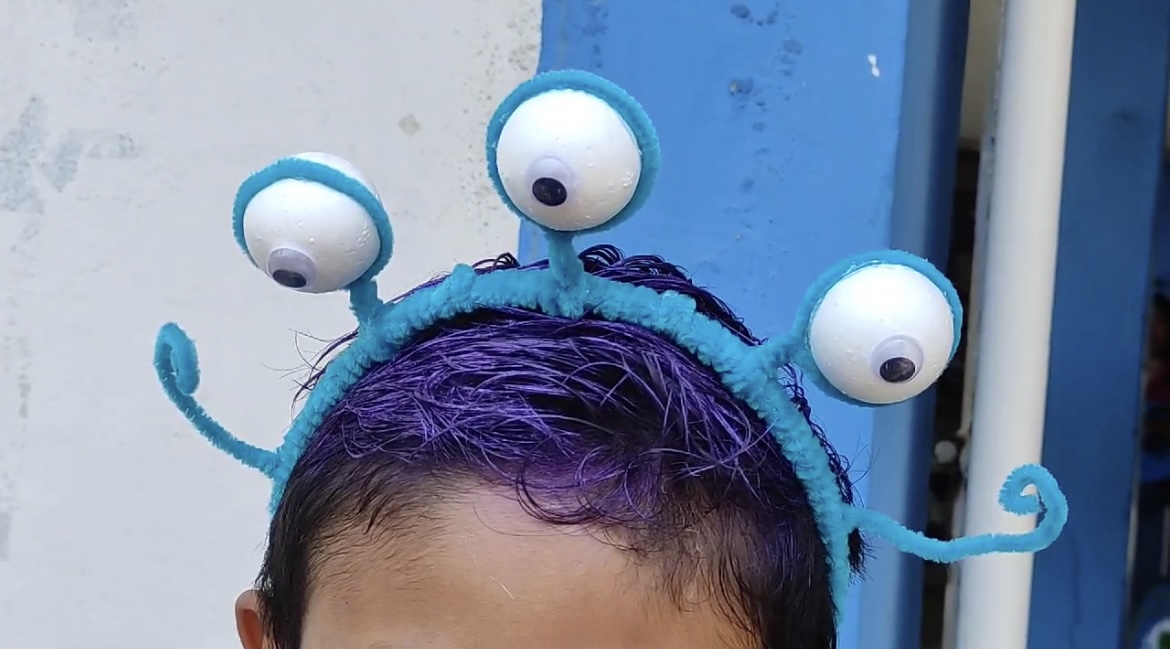 “Mi peinado loco es de trompo de taquero, mi mamá  me ayudó, se me vino a la mente y se me  ocurrió; nos costó como un día y medio para hacerlo un día y medio para hacerlo”, apuntó Jair Tadeo, alumno de sexto grado.