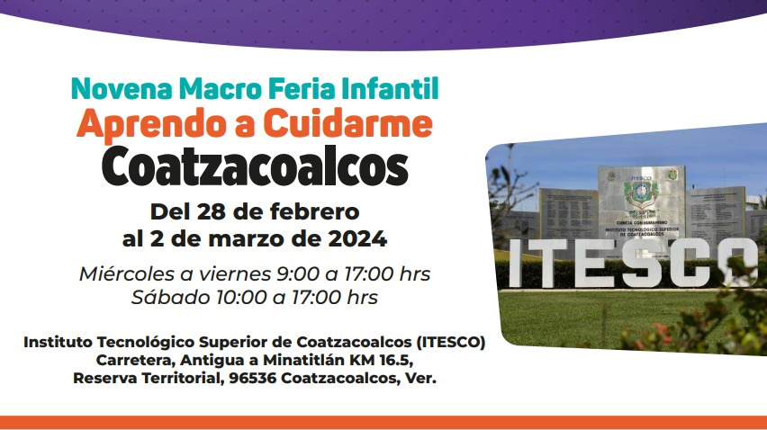 Inicio » Novena Macro Feria Infantil “Aprendo a cuidarme”, este mes en Coatzacoalcos