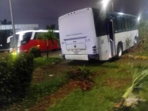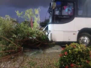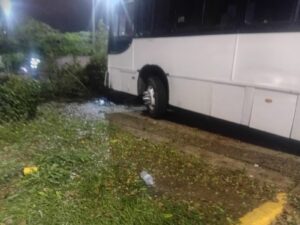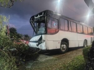 Por manejar cansado, el operador de un autobús de transporte de personal terminó lesionado y provocó daños materiales por más de 50 mil pesos, al chocar el vehículo que manejaba contra varios árboles que se encontraban en el camellón central de la avenida.