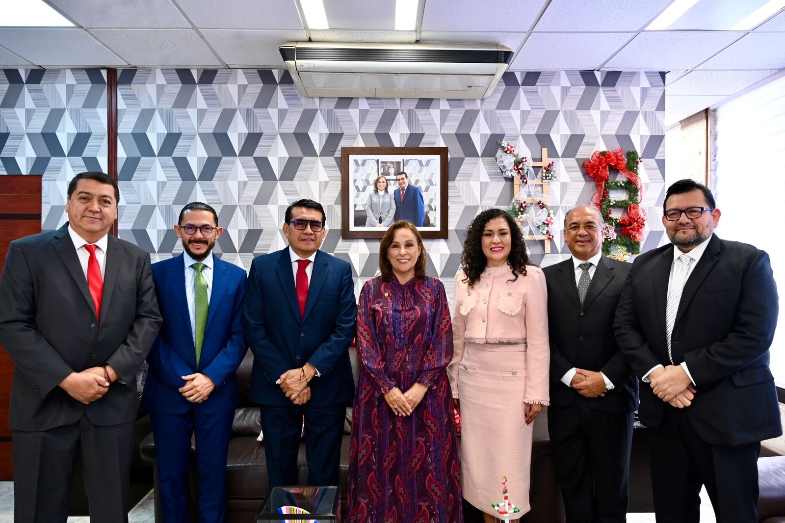 Al inicio de la comparecencia, la presidenta de la Mesa Directiva, diputada Naomi Edith Gómez Santos, designó a los legisladores Esteban Bautista Hernández, Carlos Marcelo Ruiz Sánchez, Enrique Cambranis Torres, Ramón Díaz Ávila, Adrián Sigfrido Ávila Estrada y a la diputada Ana Rosa Valdés Salazar para integrar la comisión de cortesía que recibió a la titular del Ejecutivo y la condujo hasta el Recinto Oficial de Sesiones del Palacio Legislativo.