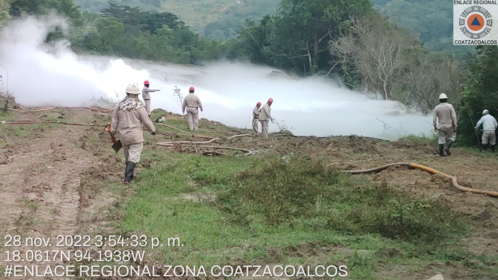 Personal de PEMEX realizó las maniobras de disipación de la concentración de gas, así como control y liberación, con el apoyo de dos pipas de agua de PC Estatal y el municipio de Agua Dulce.