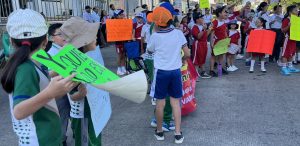 Padres de familia de la escuela Artículo 123 Tomasa Valdez viuda de Alemán, acompañados de sus hijos, cerraron por unos minutos en la avenida Zaragoza y Carranza en el centro de Coatzacoalcos para después protestar en el Ayuntamiento.