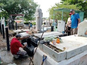 La dirección de panteones del Gobierno Municipal, reportó que cuadrillas de trabajadores dan los últimos detalles de mantenimiento, limpieza, chapeo y fumigación en los terrenos, además de contar con suficiente abastecimiento de agua en las piletas.