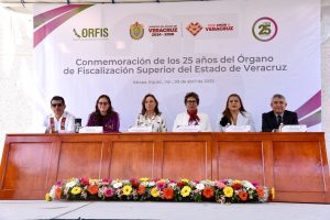 La LXVII Legislatura del Estado de Veracruz, representada por la presidenta de la Mesa Directiva, diputada Tanya Carola Viveros Cházaro, y por el presidente de la Junta de Coordinación Política (Jucopo), diputado Esteban Bautista Hernández, atestiguó la conmemoración de los 25 años del Órgano de Fiscalización Superior del estado (Orfis).