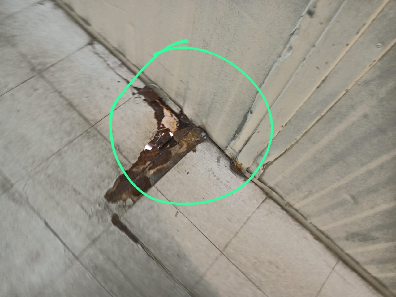 Por afuera la estructura está completamente oxidada, incluso se observa vencida por su parte central.