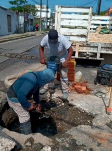 De manera paralela, se iniciaron los trabajos de reparación de drenaje en la calle Allende, entre Transístmica y General Anaya, en la colonia Esfuerzo de los Hermanos del Trabajo, con el objetivo de garantizar un servicio eficiente y seguro.