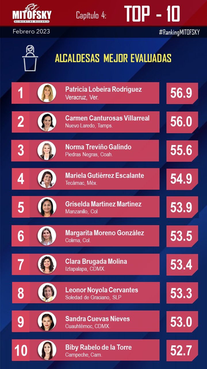 Asimismo, la Alcaldesa del Puerto de Veracruz continúa ascendiendo en el ranking global de presidentes municipales de todo el país; ahora se encuentra en el Top 5.