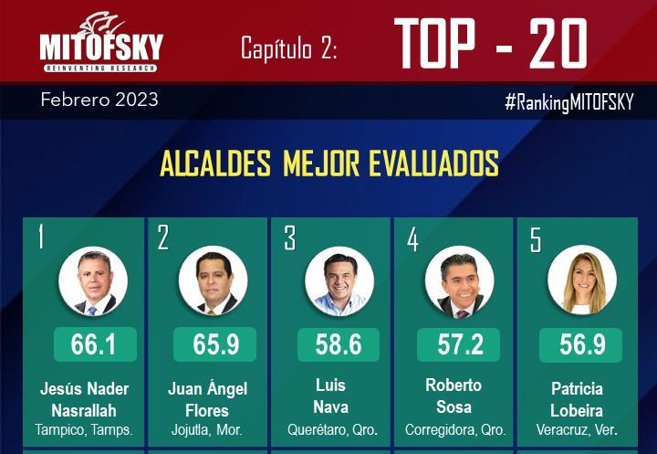 La primera encuesta de Mitofsky de este 2023, sitúa a la alcaldesa Paty Lobeira de Yunes como la mejor calificada de todo el país, lo que refleja una gran aceptación de los veracruzanos al trabajo, políticas públicas, obras, acciones y decisiones que ha ejecutado durante su primer año de gobierno municipal.