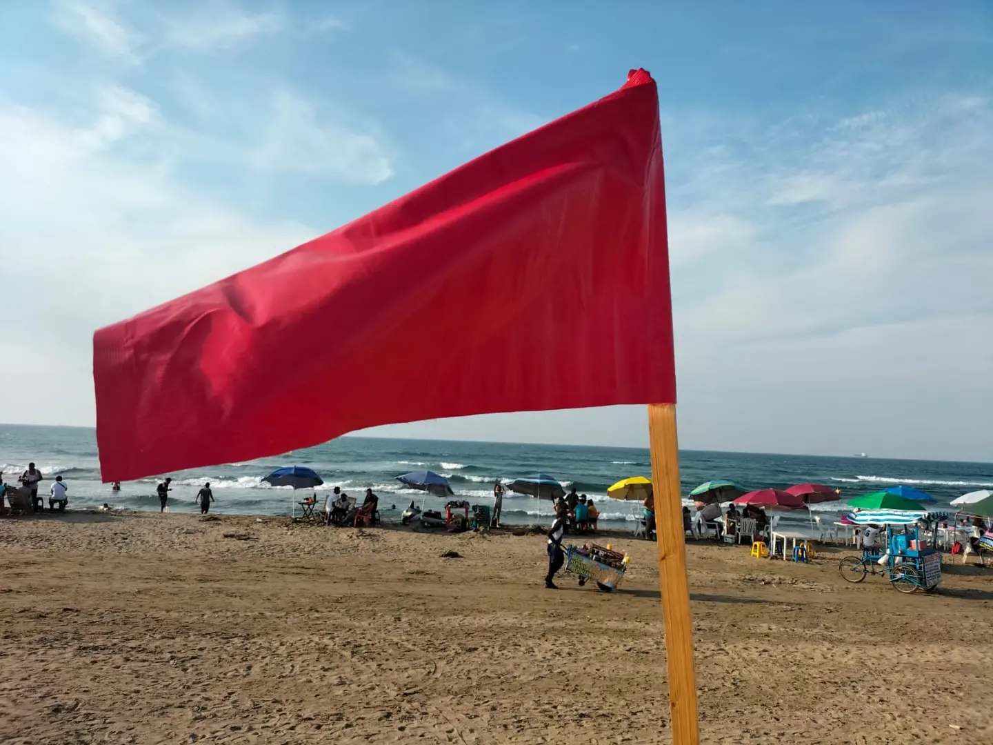 Explicó que la bandera roja es indicativo que está prohibido ingresar porque las condiciones del agua son peligrosas.