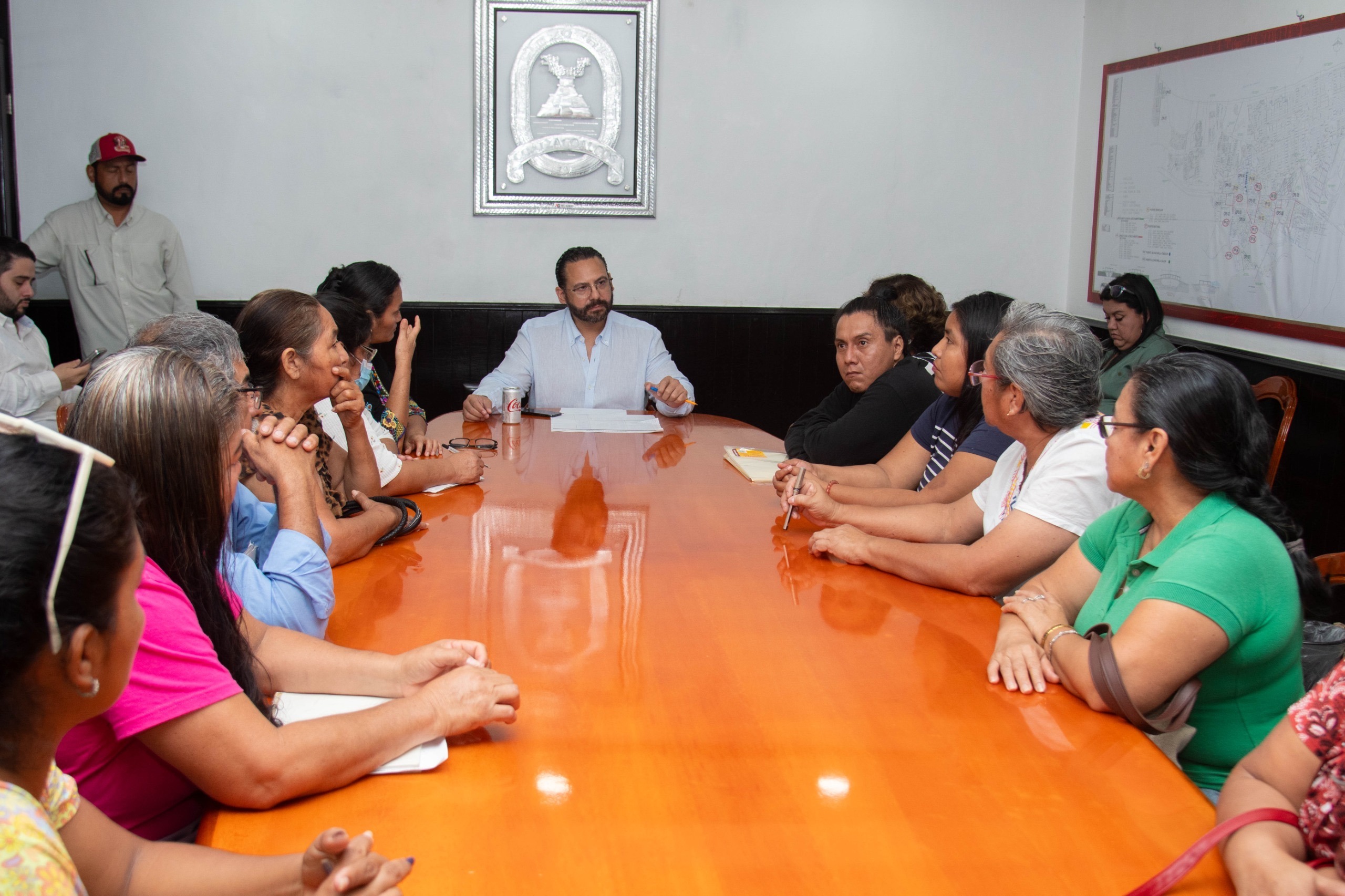 El presidente municipal Pedro Miguel Rosaldo García sostuvo un encuentro con habitantes de colonias del poniente de Coatzacoalcos que han sido afectados por la falta de agua potable, con el objetivo de escuchar sus inquietudes, entablar un diálogo directo y presentar las acciones que ya se realizan para solucionar la problemática.