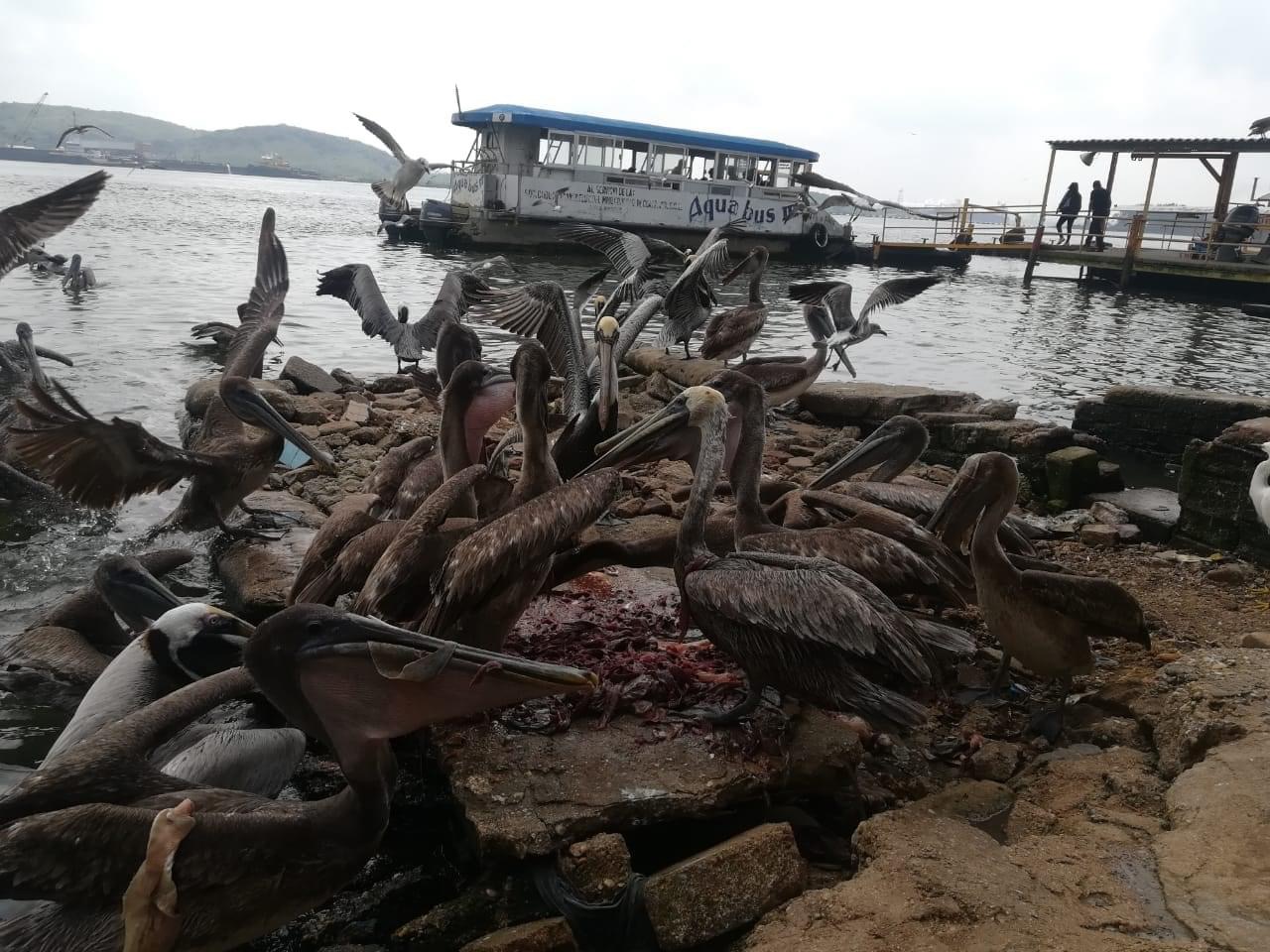 Takami Ortega señaló que los pelícanos no pueden volar, están echados con la cabeza para abajo, son muy fáciles de capturar, traen sus pupilas dilatadas, débiles e inapetentes.