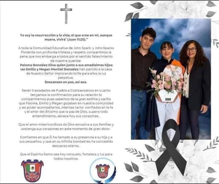 Se trata de la profesora de la escuela John Spark Paloma González Silva y sus hijos Iván Emilio y Megan Montiel González, quienes fallecieron junto con otra persona identificada como Diego Alexis Rivera Salgado.