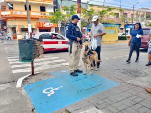 Por lo que la Policía Municipal de Coatzacoalcos llevó a cabo acciones de proximidad social a través de su Unidad Canina en las inmediaciones del centro de la ciudad.