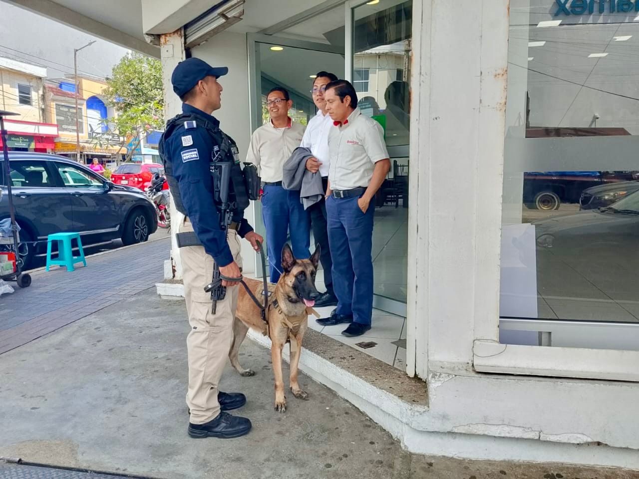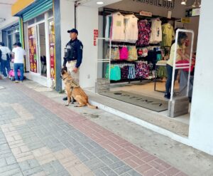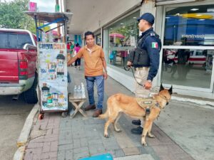 Policía Municipal de Coatzacoalcos fortalece la proximidad social con la Unidad Canina en el centro de la ciudad