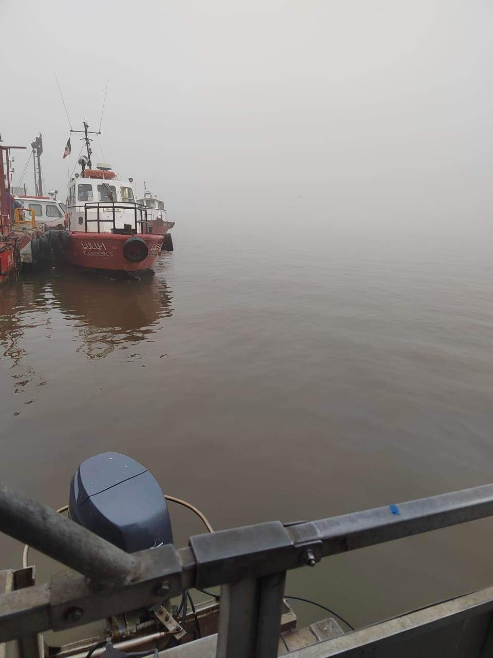 Suspenden servio de transporte fluvial por la intensa neblina que provoca poca visibilidad entre el cruce de embarcaciones en el río Coatzacoalcos esta mañana en el último viernes del año 2022.
