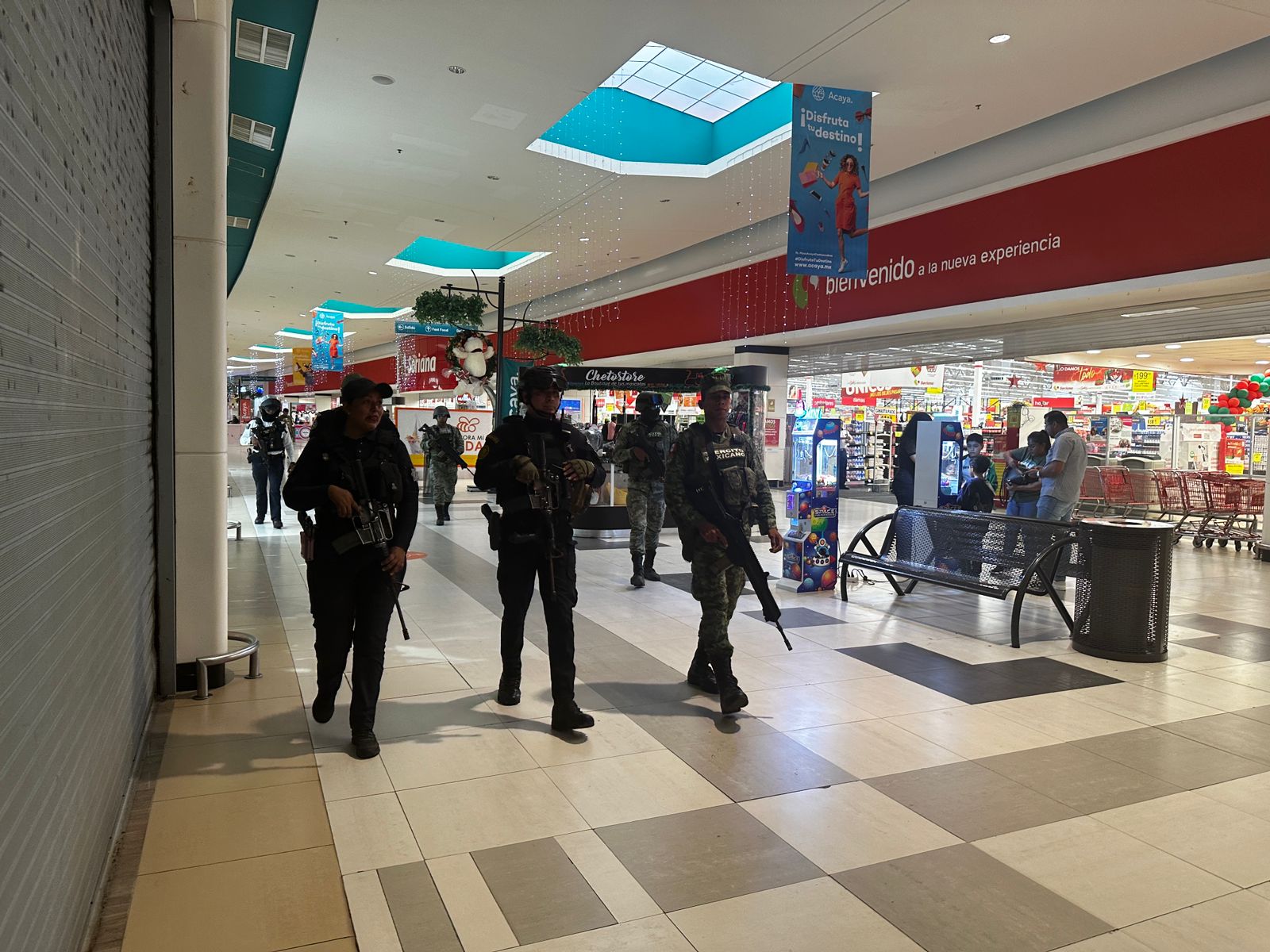 Efectivos de la Secretaría de Seguridad Pública (SSP), a través de Policía Estatal, en coordinación con elementos de la SEDENA y Policía Vial mantienen el esquema preventivo mediante recorridos al interior y exterior de plazas comerciales, además de implementar filtros de inspección aleatorios en Coatzacoalcos.