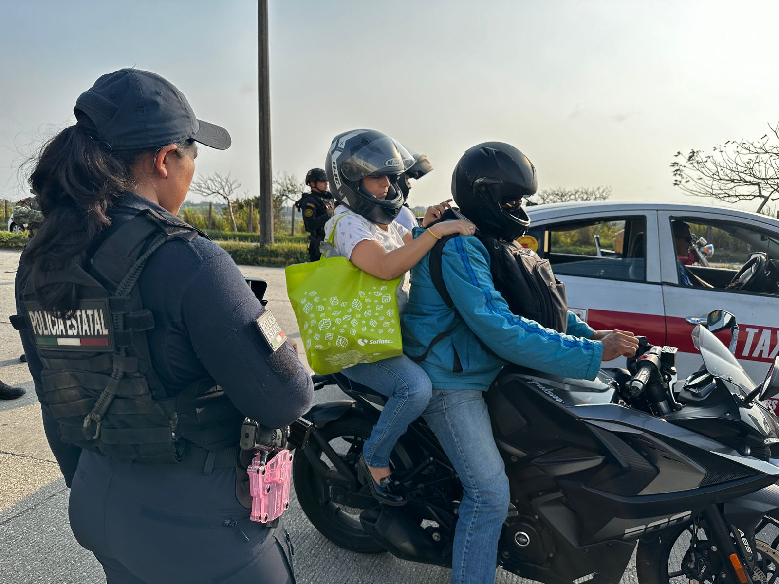 Los oficiales tienen la encomienda de realizar inspecciones a personas, vehículos para inhibir la comisión de ilícitos, así como sobrevuelos en la zona para resguardar a las familias veracruzanas durante la temporada decembrina.