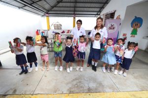 Por su parte, la subdirectora de educación, Irma Rosaldo Enríquez, enseñó a los pequeños técnicas correctas de cepillado, enfatizando la necesidad de incorporar desde temprana edad buenos hábitos de higiene bucal para prevenir enfermedades y fomentar una cultura de autocuidado.