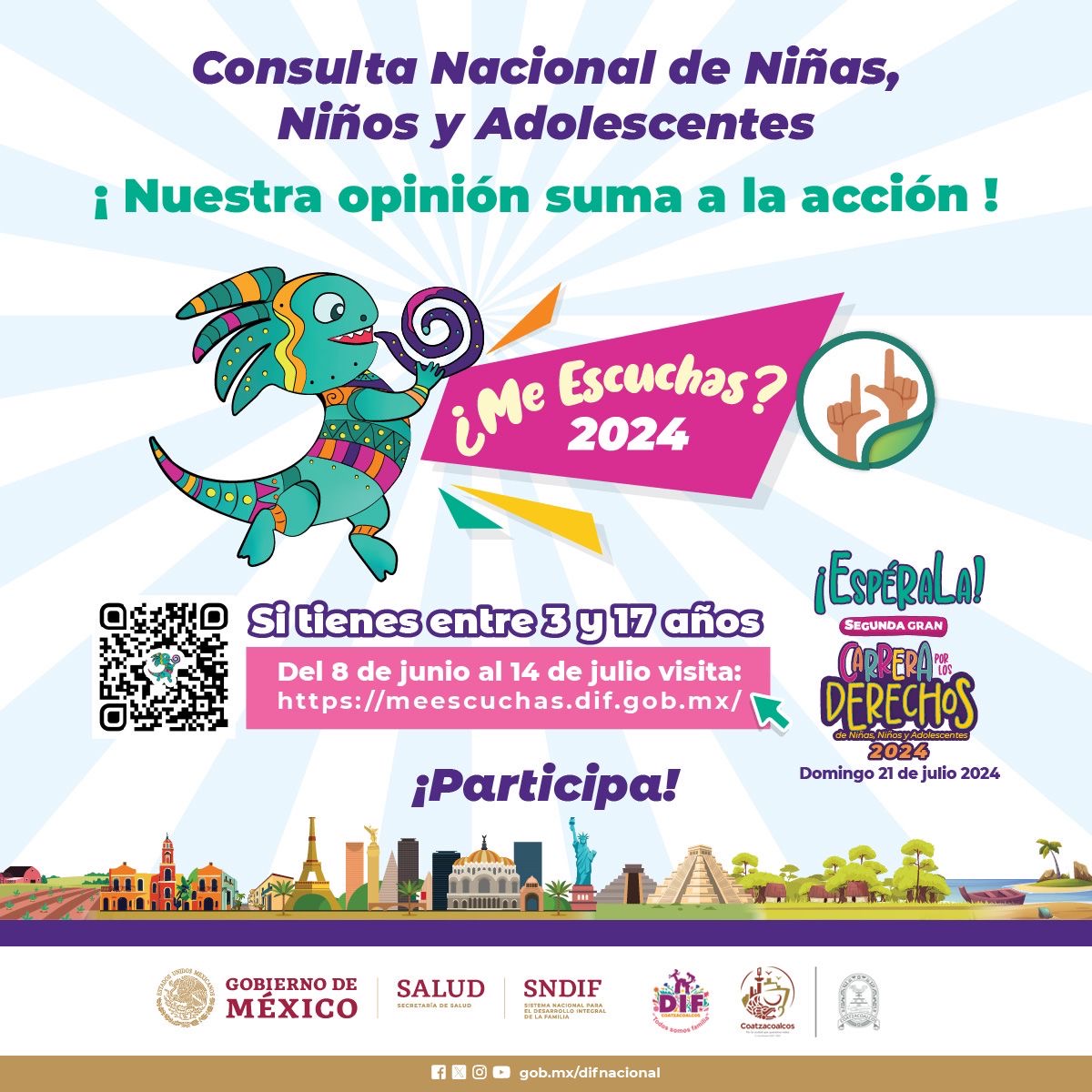 El DIF Municipal de Coatzacoalcos que preside Esther Mortera Zetina, a través de la Procuraduría Municipal de Niñas, Niños y Adolescentes invitan a la población de Coatzacoalcos a participar en la Consulta Nacional de Niñas, Niños y Adolescentes ¿Me escuchas? 2024.