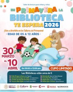 Con el objetivo de fortalecer el hábito de la lectura y promover valores como el respeto, el trabajo en equipo y la creatividad entre la niñez, el gobierno de Coatzacoalcos, que encabeza el alcalde Pedro Miguel Rosaldo García, invita a participar en el taller vacacional “En primavera la biblioteca te espera 2026”.