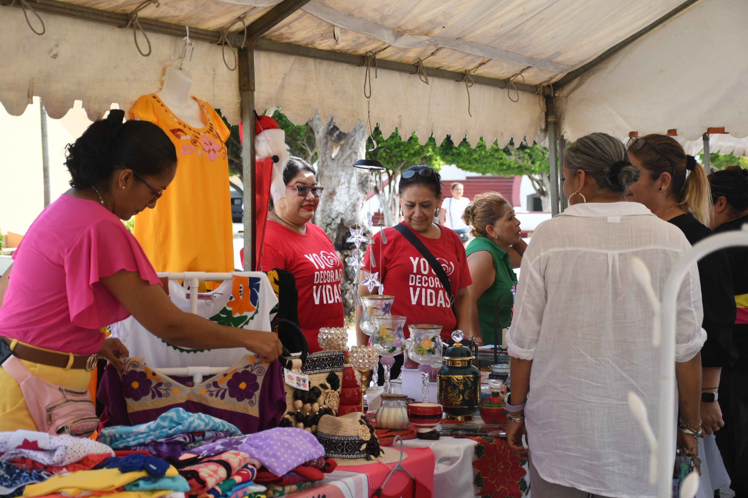 Desde las 14:00 a las 21:00, las comerciantes ofrecieron al público los productos elaborados a mano como artesanías, toritos, chicharrones, tacos caseros, picadas, collares, pulseras, sandalias tejidas, repostería, ropa, jabones, aceites, preparados de micheladas, entre otros.