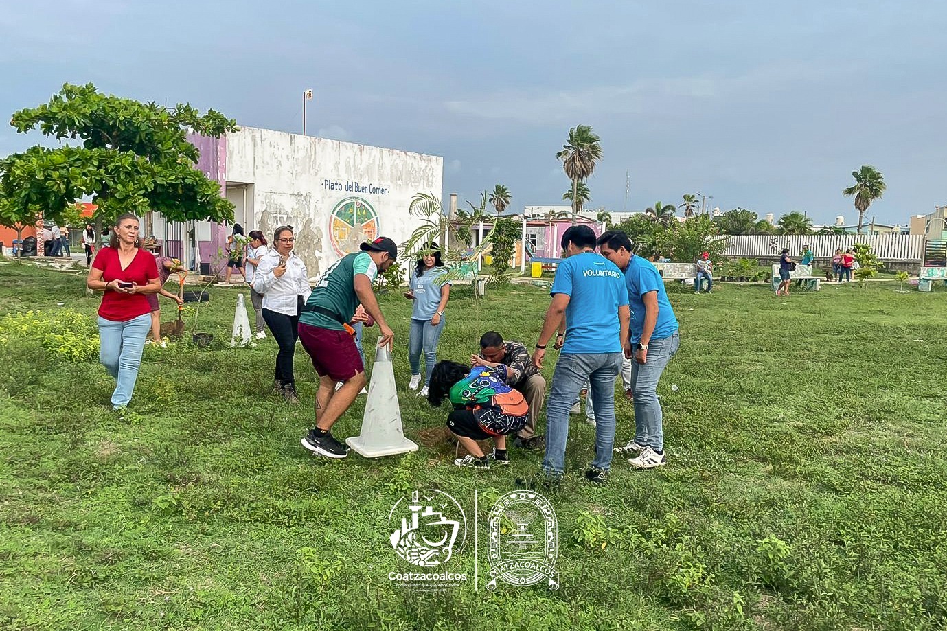 En el marco del “Día del Árbol en México” que se celebra cada segundo jueves de julio, el Gobierno de Coatzacoalcos promovió entre los alumnos de la primaria ´Francisco Mata Aguilar´ turno matutino, primaria ´Vicente Guerrero´ turno vespertino, docentes y padres de familia, la siembra de 50 plantas de distintas variedades.