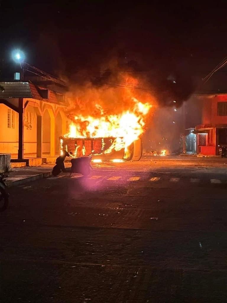 Los habitantes prendieron fuego a tres patrullas de la policía estatal, luego fueron hasta el palacio municipal, de donde sacaron a los trabajadores, y posteriormente incendiaron el inmueble.