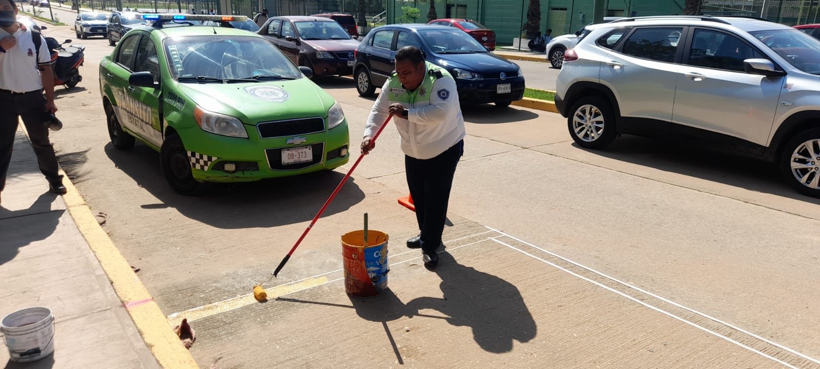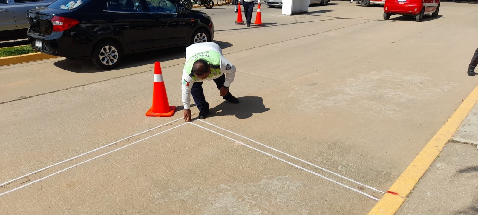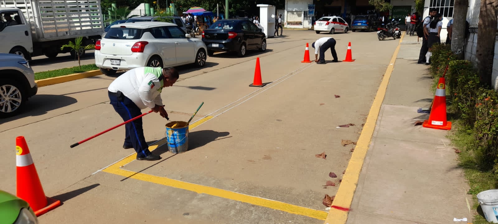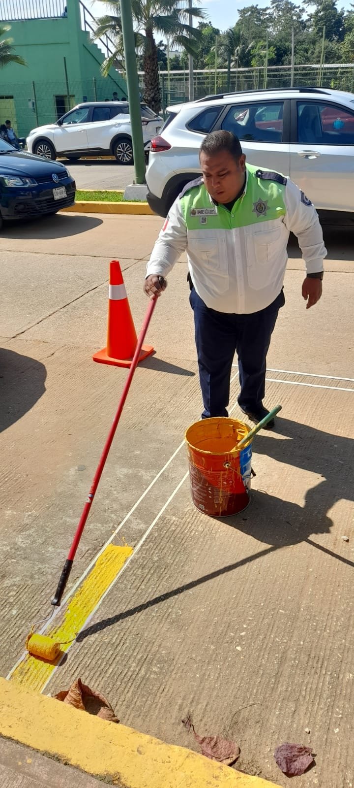 La Secretaría de Seguridad Pública (SSP), a través de la Dirección General de Tránsito y Seguridad Vial (DGTSV), rehabilitó este día espacios para estacionamientos y otras señalizaciones en la colonia Barrio Primero, en el municipio de Cosoleacaque.