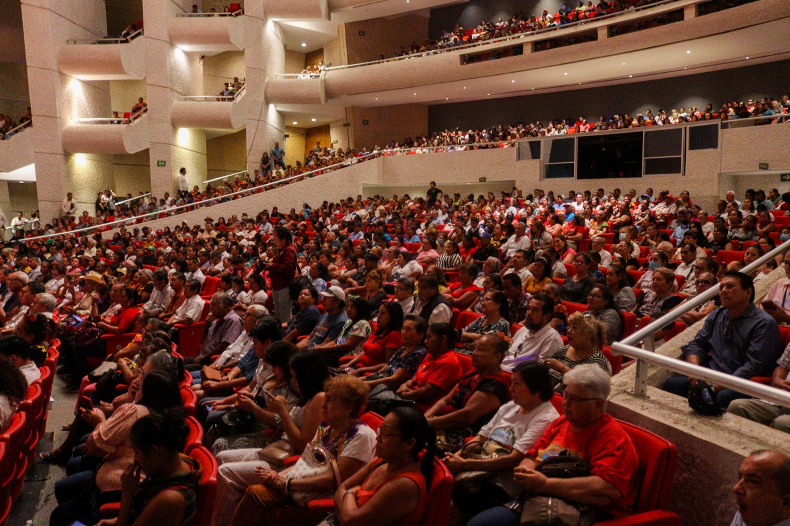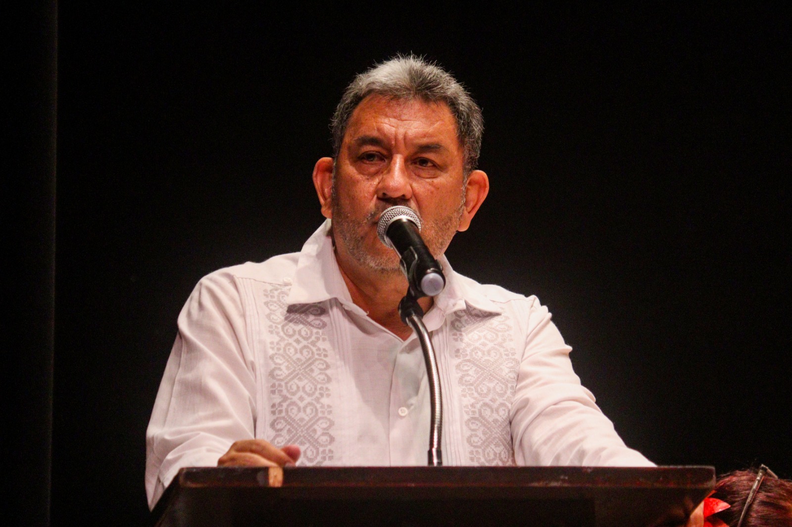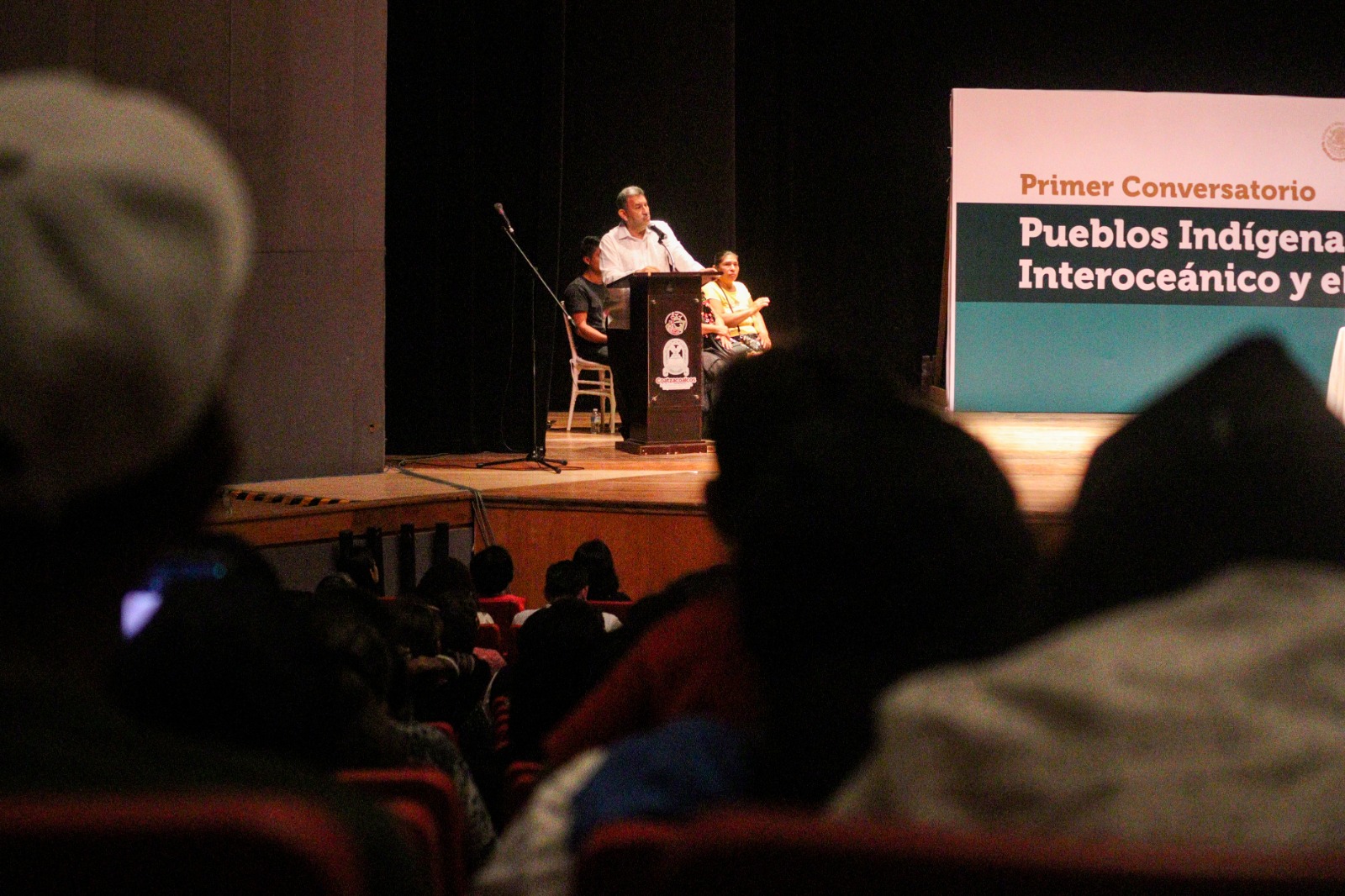 El presidente municipal, Amado Cruz Malpica; la delegada regional del Instituto Nacional de Pueblos Indígenas (INPI), Magdalena Hernández Hernández; y el experto en políticas públicas con población indígena procedente del Estado Plurinacional de Bolivia, Marcelo Eduardo Zaiduni Salazar, fueron los encargados de las conferencias en el Teatro de la Ciudad.