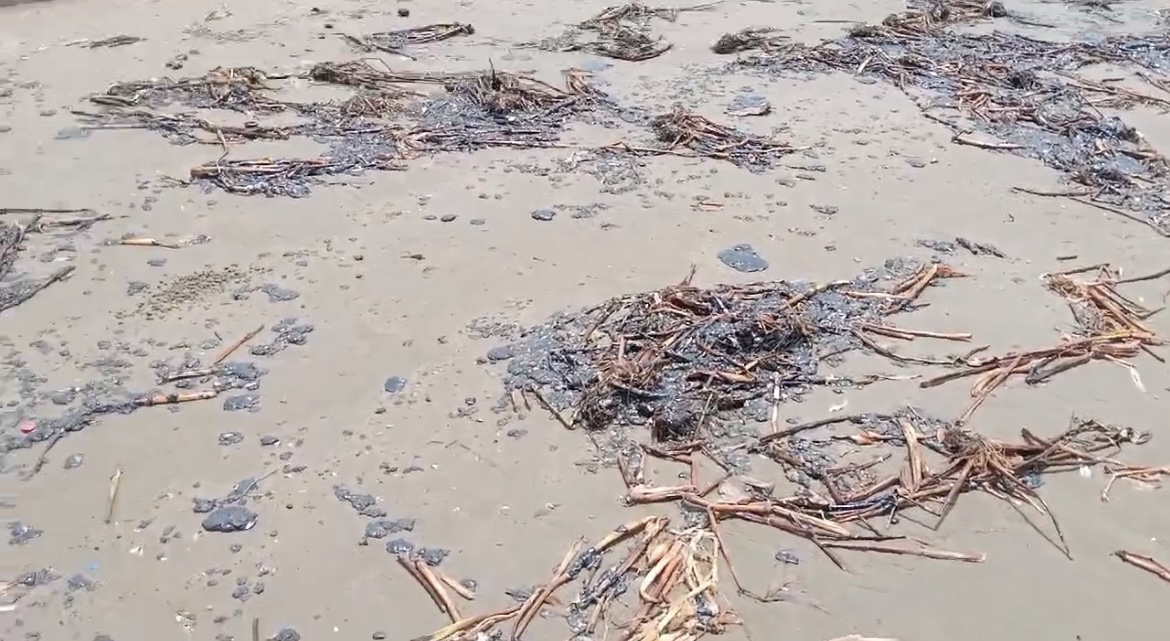 Las plastas del producto se extendieron por varios kilómetros en gran parte de la costa y también en el mar. Además de lirio acuático impregnado con el residuo.