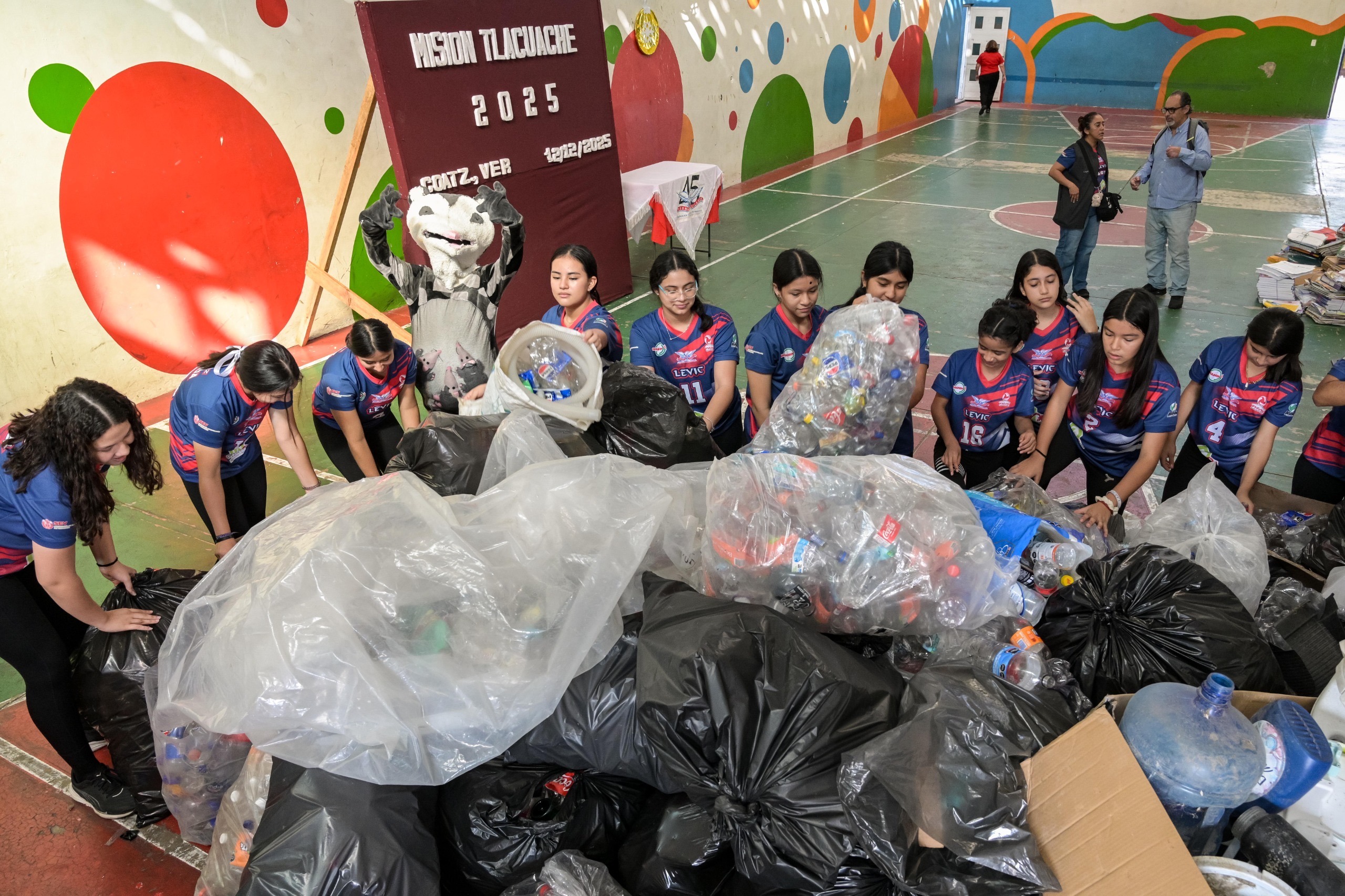 La convocatoria ciudadana, impulsada por el gobierno municipal a través de ‘Misión Tlacuache’, se sumó en beneficio de la escuela ‘Leona Vicario’. Los jóvenes deportistas, junto a sus padres, docentes y la botarga “Tlacuache”, recibieron dos toneladas de material reciclable, incluyendo botellas de plástico, latas, cartón, papel y aceite quemado de cocina.