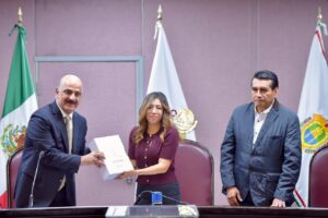 La diputada Naomi Edith Gómez Santos agradeció al funcionario el cumplimiento con la disposición constitucional y expresó su beneplácito por recibir el informe de la primera gobernadora de Veracruz, la ingeniera Rocío Nahle García, “me da gusto porque sé que es una mujer de trabajo y en este documento vienen plasmadas todas las acciones que ha hecho en los diversos rubros, por amor a Veracruz”.
