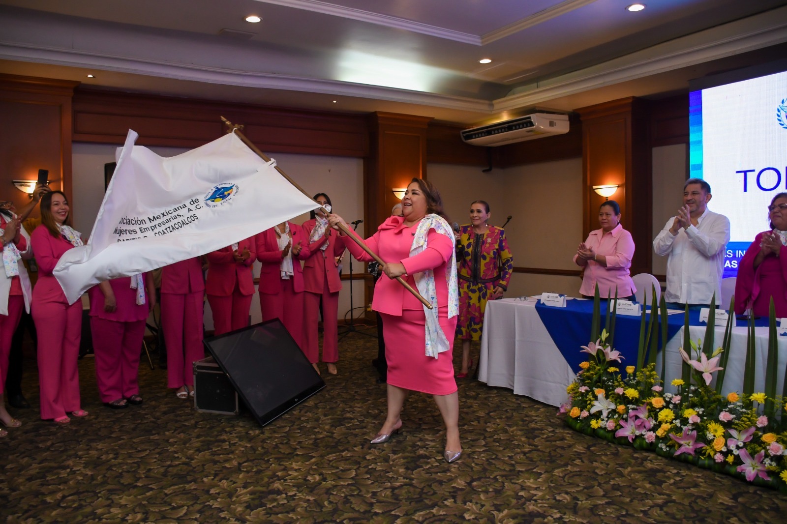 Este martes, en un desayuno al que acudieron autoridades estatales, municipales, representantes de las cámaras empresariales y presidentas de la Amexme de la región, la nueva presidenta recibió su pin y ondeó la bandera de la asociación refrendando su principio: “Solas invisibles, juntas, invencibles”.