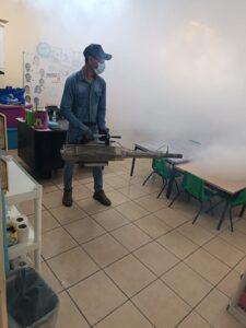 Durante esta jornada, se fumigaron aulas, patios y áreas de juego, garantizando un entorno seguro y saludable para la comunidad educativa.