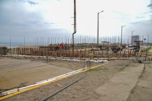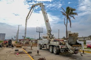 La obra de rehabilitación del drenaje pluvial, mediante la construcción de un canal sobre el malecón costero registra un avance del 30 por ciento. Este viernes se realizó el suministro y vaciado de 49 metros cúbicos de concreto premezclado, especialmente formulado para resistir sulfatos y ambientes marinos.