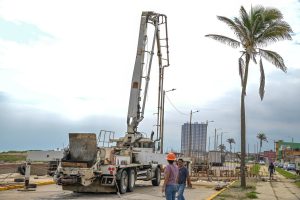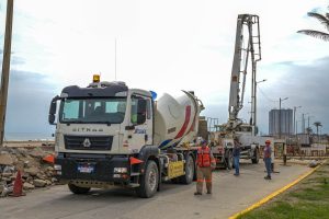 La obra de rehabilitación del drenaje pluvial, mediante la construcción de un canal sobre el malecón costero registra un avance del 30 por ciento. Este viernes se realizó el suministro y vaciado de 49 metros cúbicos de concreto premezclado, especialmente formulado para resistir sulfatos y ambientes marinos.