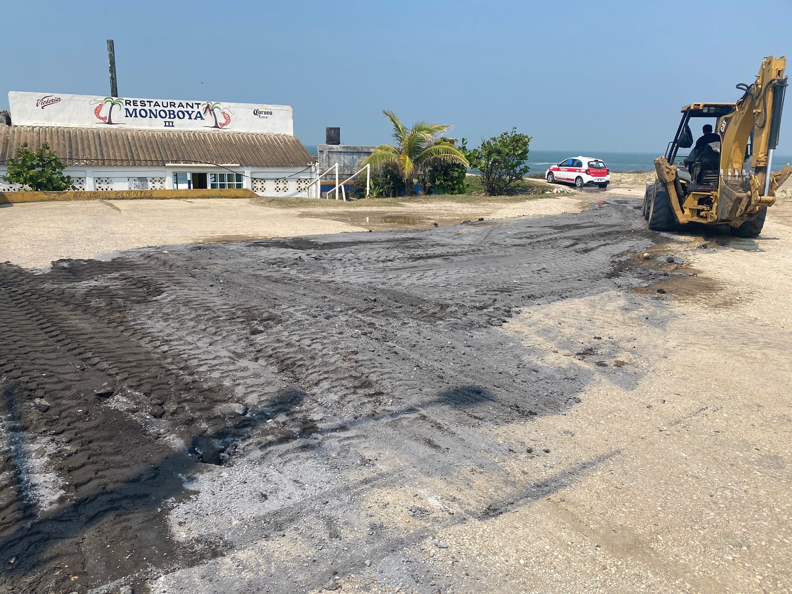 Dentro de los trabajos de rehabilitación se colocó asfalto y limpieza de arena para el acceso de los visitantes durante las vacaciones de semana santa.